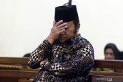 Terdakwa korupsi proyek Dinas PUPR Lampung Selatan Zainudin Hasan menjalani sidang pembacaan putusan di Pengadilan Tipikor, Bandar Lampung, Lampung, Kamis (25/4/2019). Majelis hakim memvonis Zainudin Hasan dengan hukuman dua belas tahun penjara dan denda Rp500 juta subsider lima bulan kurungan karena terbukti melakukan tindak pidana korupsi. ANTARA FOTO/Ardiansyah/pras.
