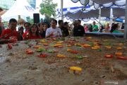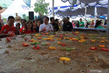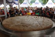 Petugas dari Museum Rekor Indonesia (MURI) melakukan penilaian Bakso Gepeng terbesar di dunia untuk dicatatkan dalam Rekor Muri di ITC BSD Serpong, Tangerang Selatan, Banten, Sabtu (27/4/2019). ITC BSD Serpong bersama Saus Sambal Dua Belibis berhasil memecahkan Rekor Muri Bakso Gepeng dengan berat 1,2 ton yang berdiameter 3 meter dalam rangka promosi makanan asli Indonesia untuk lebih dikenal dunia Internasional. ANTARA FOTO/Muhammad Iqbal/pras.