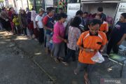 Warga antre membeli bawang putih seharga Rp24 ribu per kilogram saat operasi pasar khusus bawang putih di Kelurahan Pesantren, Kota Kediri, Jawa Timur, Sabtu (4/5/2019). Operasi pasar yang diselenggarakan Tim Pengendali Inflasi Daerah (TPID) tersebut digelar untuk mengendalikan harga bawang putih pada tingkat wajar menjelang bulan Ramadhan. ANTARA FOTO/Prasetia Fauzani/wsj.