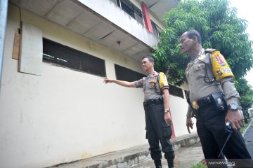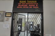 Anggota kepolisian berjaga di ruang tahanan Polresta Palembang, Sumsel, Minggu (5/5/2019). Sebanyak 30 tahanan Polresta Palembang kabur melalui ventilasi ruang tahanan pada Minggu (5/5/2019) dini hari, dan lima diantaranya berhasil ditangkap di kawasan Mariana Kabupaten Banyuasin. ANTARA FOTO/Feny Selly/aww.