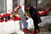 Seorang wanita berdoa di depan bunga dan boneka duka cita untuk korban kecelakaan pesawat Sukhoi Superjet 100 milik maskapai Aeroflot berada di Moscow, Senin (6/5/2019). ANTARA FOTO/REUTERS/pras.