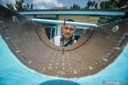 Pengunjung melihat Jam Istiwa atau Jam Bencet di Masjid Agung, Solo, Jawa Tengah, Selasa (7/5/2019). Jam yang dibuat pada masa Raja Pakubowono VIII tahun 1784 Jawa/1855 Masehi tersebut memanfaatkan bayangan paralel sinar matahari yang dahulu digunakan sebagai patokan waktu shalat, termasuk waktu berbuka puasa saat Ramadhan. ANTARA FOTO/Mohammad Ayudha/hp.