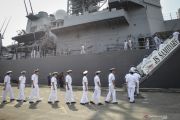 Prajurit Angkatan Laut Jepang berjalan menuju kapal JS Samidare seusai mengikuti upacara penyambutan di dermaga JICT II, Pelabuhan Tanjung Priok, Jakarta, Rabu (8/5/2019). Kapal JS Samidare singgah ke Indonesia usai menyelesaikan misi anti pembajakan di Somalia sekaligus dalam rangka memperingati hubungan Indonesia-Jepang ke 61. ANTARA FOTO/Dhemas Reviyanto/hp.