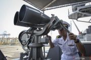 Prajurit Angkatan Laut Jepang memberi penjelasan tentang fitur dan fasilitas kapal JS Samidare saat open ship di dermaga JICT II, Pelabuhan Tanjung Priok, Jakarta, Rabu (8/5/2019). Kapal JS Samidare singgah ke Indonesia usai menyelesaikan misi anti pembajakan di Somalia sekaligus dalam rangka memperingati hubungan Indonesia-Jepang ke 61. ANTARA FOTO/Dhemas Reviyanto/hp.