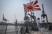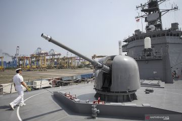 Prajurit Angkatan Laut Jepang berjalan di atas kapal JS Samidare saat open ship di dermaga JICT II, Pelabuhan Tanjung Priok, Jakarta, Rabu (8/5/2019). Kapal JS Samidare singgah ke Indonesia usai menyelesaikan misi anti pembajakan di Somalia sekaligus dalam rangka memperingati hubungan Indonesia-Jepang ke 61. ANTARA FOTO/Dhemas Reviyanto/hp.
