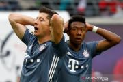 Ekspresi pemain Bayern Munchen Robert Lewandowski dan David Alaba seusai bermain seri dengan RB Leipzig pada pertandingan Bundesliga di Red Bull Arena, Leipzig, Sabtu (11/5/2019). Kedua tim bermain imbang 0-0. ANTARA FOTO/REUTERS/Kai Pfaffenbach/pras.