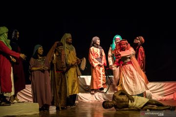 Pelakon mementaskan adegan drama Sunda religi berjudul "Kasidah Cinta Bilal Sang Muadzin" di Gedung Kesenian Rumentang Siang, Bandung, Jawa Barat, Jumat (17/5/2019). Kasidah Cinta Bilal Sang Muadzin karya Rosyid E. Abby merupakan rangkaian dari pentas episodial drama sunda religi âKasidah Cintaâ, yang dipergelarkan setiap tahun di bulan Ramadhan (sejak 2006) oleh kelompok Teater Senapati SMA Pasundan 3 Bandung. ANTARA FOTO/M Agung Rajasa/hp.