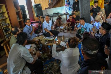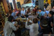 Calon Wakil Presiden no urut 02 Sandiaga Salahuddin Uno (tiga kiri) berdialog dengan peserta bedah buku 'Hikayat Suara-Suara' di Bandar Serai Raja Ali Haji, Pekanbaru, Riau, Sabtu (18/5/2019). Bedah buku Hikayat Suara-Suara karya Datuk Taufik Ikram Jalil ini juga sekaligus memperingati Hari Buku Nasional 2019. ANTARA FOTO/Rony Muharrman/hp.