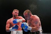 Petinju asal Inggris Billy Joe Saunders (kanan) menerima pukulan yang dilesakkan oleh lawannya petinju asal Serbia Shefat Isufi dalam duel tinju WBO World Super kelas middleweight di The Lamex Stadium, Stevenage, Inggris, Minggu (19/5/2019) dini hari. Billy Joe Saunders memenangkan gelar super-menengah kelas dunia WBO yang kosong dengan kemenangan poin penuh atas Shefat Isufi. ANTARA FOTO/Action Images via Reuters/Andrew Couldridge/wsj.