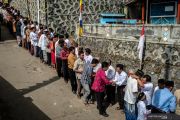 Sejumlah umat Islam menghadiri acara silaturahmi dengan umat Buddha dalam perayaan Hari Raya Waisak 2563 BE/2019 di Dusun Thekelan, Desa Batur, Getasan, Kabupaten Semarang, Jawa Tengah, Minggu (19/5/2019). Prosesi silaturahmi bersalaman saling memaafkan yang diikuti umat Islam, Kristen dan Katolik dengan umat Buddha yang tengah merayakan Hari Waisak 2019 itu sebagai wujud kesatuan dan persatuan masyarakat setempat dalam kerukunan antar umat beragama. ANTARA FOTO/Aji Styawan/wsj.