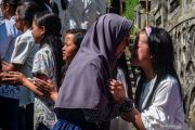 Umat Islam bersilaturahmi dengan umat Buddha dalam perayaan Hari Raya Waisak 2563 BE/2019 di Dusun Thekelan, Desa Batur, Getasan, Kabupaten Semarang, Jawa Tengah, Minggu (19/5/2019). Prosesi silaturahmi bersalaman saling memaafkan yang diikuti umat Islam, Kristen dan Katolik dengan umat Buddha yang tengah merayakan Hari Waisak 2019 itu sebagai wujud kesatuan dan persatuan masyarakat setempat dalam kerukunan antar umat beragama. ANTARA FOTO/Aji Styawan/wsj.