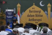 Ketua KPK Agus Rahardjo berpidato di hadapan sejumlah perwakilan ormas islam dalam acara sinergi dakwah antikorupsi di Jakarta, Senin (20/5/2019). Kegiatan itu mengangkat tema bangkit bersama membangun peradaban antikorupsi melalui dakwah. ANTARA FOTO/Akbar Nugroho Gumay/hp.