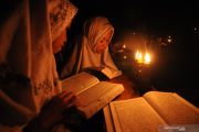 Sejumlah santriwati membaca Alquran bersama di Pondok Pesantren Nurul Hidayah Al Mubarokah, Sempu, Andong, Boyolali, Jawa Tengah, Senin (20/5/2019). Kegiatan membaca Alquran bersama tersebut digelar untuk menyambut malam Nuzulul Quran 17 Ramadhan 1440 Hijriah. ANTARA FOTO/Aloysius Jarot Nugroho/hp.