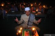 Seorang guru memimpin para santri dan santriwati membaca Alquran bersama di Pondok Pesantren Nurul Hidayah Al Mubarokah, Sempu, Andong, Boyolali, Jawa Tengah, Senin (20/5/2019). Kegiatan membaca Alquran bersama tersebut digelar untuk menyambut malam Nuzulul Quran 17 Ramadhan 1440 Hijriah. ANTARA FOTO/Aloysius Jarot Nugroho/hp.
