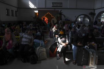 Calon penumpang KA Gaya Baru Malam Selatan tujuan Surabaya menunggu kereta di Stasiun Pasar Senen, Jakarta, Kamis (30/5/2019). Direktorat Jenderal Perkeretaapian Kemenhub memprediksi pemudik yang menggunakan jasa angkutan kereta api mengalami peningkatan pada 29 Mei hingga 4 Juni dengan puncak arus mudik pada Jumat, 31 Mei. ANTARA FOTO/Hafidz Mubarak A/wsj.