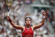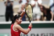 Petenis Latvia Anastasija Sevastova mengepalkan tangannya saat bertanding melawan petenis Belgia Elise Mertens di babak ketiga Turnamen Tenis Perancis Terbuka, di Paris, Perancis, Kamis (31/5/2019). Anastasija menang 6(3)-7(7), 6-4 dan 11-9. ANTARA FOTO/Reuters- Benoit Tessier/hp.