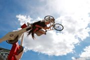 Pengendara sepeda melakukan atraksi "Space Bikes" pada Hari Sepeda Sedunia di Brussels, Belgia, Minggu (2/6/2019). ANTARA FOTO/REUTERS/Francois Lenoir/aww.