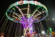 Pengunjung mencoba salah satu wahana permainan pasar malam di Lapangan Pasar Bersih, Karawang, Jawa Barat, Kamis (6/6/2019). Pasar malam tersebut menyajikan beragam wahana permainan dan penjualan barang dengan harga terjangkau menjadi salah satu alternatif hiburan malam yang diminati masyarakat. ANTARA FOTO/M Ibnu Chazar/hp.