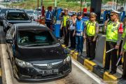 Kakorlantas Polri Irjen Pol Refdi Andri (kanan) secara simbolis memberlakukan satu jalur (one way) di Tol Trans Jawa Km 414 Gerbang Tol Kalikangkung, Semarang, Jawa Tengah, Jumat (7/6/2019). Pada H+2 lebaran, Korlantas Polri memberlakukan kebijakan satu jalur (one way) mulai Jumat (7/6/2019) pukul 14:00 WIB untuk kendaraan dari arah Jateng menuju Jakarta yang dimulai dari gerbang tol tersebut hingga Km 70 Gerbang Tol Cikampek Utama yang rencananya akan diberlakukan hingga Minggu (10/6/2019). ANTARA FOTO/Aji Styawan/hp.