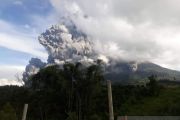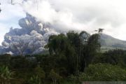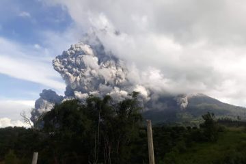 Gunung Sinabung menyemburkan material vulkanik saat erupsi, di Karo, Sumatera Utara, Minggu (9/6/2019). Gunung Sinabung berstatus Siaga (Level lll) kembali mengalami erupsi dengan tinggi kolom abu mencapai 7.000 meter. ANTARA FOTO/Sastrawan Ginting/im/ama.