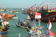 Foto: Sambut Lebaran Ketupat dengan tradisi lomba panjat pinang di laut