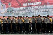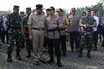 Sejumlah personel Polri mengikuti Apel Konsolidasi Operasi Ketupat Jaya 2019 dan Kesiapan PAM Perselisihan Hasil Pemilihan Umum (PHPU) Mahkamah Konstitusi (MK) di Lapangan Monas, Jakarta, Kamis (13/6/2019). Apel yang diikuti oleh prajurit TNI, Polri, Satpol PP, Dinas Perhubungan dan Pemadam Kebakaran tersebut untuk memastikan kesiapan personel dalam pengamanan sidang PHPU di MK. ANTARA FOTO/M Risyal Hidayat/wsj.
