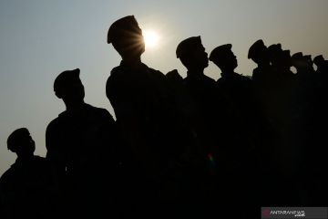 Sejumlah prajurit TNI mengikuti Apel Konsolidasi Operasi Ketupat Jaya 2019 dan Kesiapan PAM Perselisihan Hasil Pemilihan Umum (PHPU) Mahkamah Konstitusi (MK) di Lapangan Monas, Jakarta, Kamis (13/6/2019). Apel yang diikuti oleh prajurit TNI, Polri, Satpol PP, Dinas Perhubungan dan Pemadam Kebakaran tersebut untuk memastikan kesiapan personel dalam pengamanan sidang PHPU di MK. ANTARA FOTO/M Risyal Hidayat/wsj.