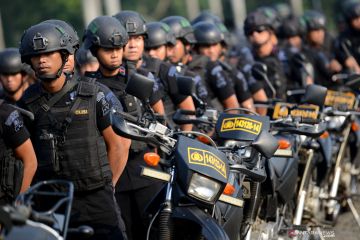 Sejumlah personel Brimob Polri mengikuti Apel Konsolidasi Operasi Ketupat Jaya 2019 dan Kesiapan PAM Perselisihan Hasil Pemilihan Umum (PHPU) Mahkamah Konstitusi (MK) di Lapangan Monas, Jakarta, Kamis (13/6/2019). Apel yang diikuti oleh prajurit TNI, Polri, Satpol PP, Dinas Perhubungan dan Pemadam Kebakaran tersebut untuk memastikan kesiapan personel dalam pengamanan sidang PHPU di MK. ANTARA FOTO/M Risyal Hidayat/wsj.