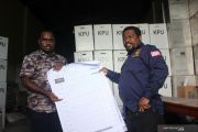 Ketua KPUD Kota Sorong Robby Yumame (kanan) dan Ketua Bawaslu Kota Sorong Elias Idie (kiri) membuka kembali formulir C1 Pemilihan Legislatif di gedung KPUD Kota Sorong, Papua Barat, Kamis (13/6/2019). KPUD Kota Sorong menyiapkan bukti pendukung guna menjawab permohonan pemohon atas kecurangan Pemilihan Umum Legislatif DPRD Provinsi Papua Barat oleh Partai Demokrat di Mahkamah Konstitusi (MK). ANTARA FOTO/Olha Mulalinda/aww.