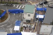 Foto udara olah tempat kejadian perkara kasus penikaman petugas kepolisian dan pencurian senjata dan pelurunya di sebuah pos polisi di Suita, prefektur Osaka, Jepang bagian barat, Minggu (16/6/2019). ANTARA FOTO/KYODO via REUTERS/wsj.