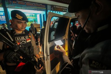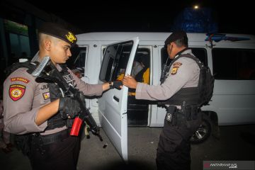 Aparat Kepolisian Unit Reaksi Cepat (URC) Polres Lhokseumawe memeriksa penumpang angkutan umum saat pengejaran dan pencarian narapidana yng kabur di terminal Lhokseumawe, Aceh, Minggu (16/6/2019). Kepolisian Aceh memperketat penjagaan terminal dan menggelar razia perbatasaan untuk menjaring dan mempersempit ruang gerak pelarian 73 napi kabur yang membobol rumah tahanan (rutan) Lhoksukon Aceh Utara pada Minggu (16/6) sekitar pukul 15.30 WIB. Sebanyak 21 napi dilaporkan telah berhasil ditangkap. ANTARA FOTO/Rahmad/aww.