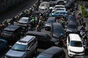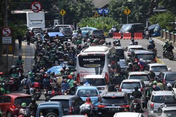 Pengendara sepeda motor mencari jalan dengan melawan arus lalu lintas saat penutupan ruas jalan Veteran akibat pelaksanaan sidang lanjutan Perselisihan Hasil Pemilihan Umum (PHPU) Pilpres 2019 oleh Mahkamah Konstitusi di Jakarta, Selasa (18/6/2019). Penutupan sejumlah ruas jalan tersebut mengakibatkan kemacetan lalu lintas di sekitar kawasan itu. ANTARA FOTO/Wahyu Putro A/wsj.