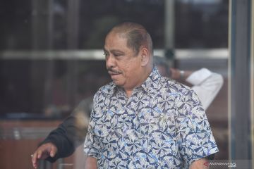 Ketua Fraksi Golkar di DPR Melchias Marcus Mekeng berjalan keluar usai menjalani pemeriksaan di gedung KPK, Jakarta, Senin (24/6/2019). Mekeng diperiksa sebagai saksi untuk tersangka Markus Nari dalam kasus dugaan korupsi proyek KTP elektronik. ANTARA FOTO/Akbar Nugroho Gumay/hp.