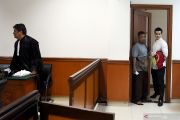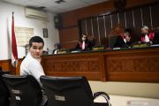 Aktor Steve Emmanuel (kiri) menjalani sidang lanjutan kasus dugaan penyelundupan kokain di Pengadilan Negeri Jakarta Barat, Senin (24/6/2019). Sidang tersebut beragenda mendengarkan pledoi atau nota pembelaan dari terdakwa. ANTARA FOTO/Galih Pradipta/hp.