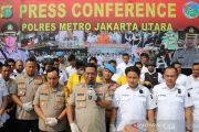 Kabid Humas Polda Metro Jaya Kombes Pol Argo Yuwono (tengah) dan Kapolres Metro Jakarta Utara Kombes Pol Budhi Herdi Susianto (ketiga kiri) dalam konferensi pers di Mapolres Metro Jakarta Pusat, Senin (24/06/2019). ANTARA/Fianda Rassat/aa