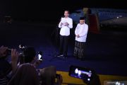 Calon presiden dan wakil presiden nomor urut 01 Joko Widodo (kiri) dan Ma'ruf Amin (kiri) memberikan keterangan pers terkait putusan MK tentang perselisihan hasil pemilihan umum (PHPU) Pilpres 2019 di Lanud Halim Perdanakusuma Jakarta, Kamis (27/6/2019). ANTARA FOTO/Wahyu Putro A/pras.