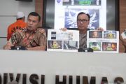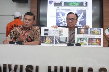 Kepala Biro Penerangan Masyarakat Divisi Humas Polri Brigjen Pol Dedi Prasetyo (kanan) bersama Kasubdit II Dittidsiber Bareskrim Polri Kombes Pol Rickynaldo Chairul (kiri) menghadirkan tersangka dan barang bukti saat rilis kasus kreator dan penyebar hoax, di gedung Divhumas Mabes Polri, Jakarta, Jumat (28/6/2019). Subdit II Dittipidsiber Bareskrim Polri telah menangkap tersangka AY (32) sebagai pemilik sekaligus kreator hoax dengan menggunakan aplikasi media sosial Youtube dan Instagram. ANTARA FOTO/Reno Esnir/hp.