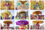 Kolase foto sejumlah peserta karnaval singa dangdut atau sisingaan yang diarak keliling kampung di Desa Cicinde Utara, Banyusari, Karawang, Jawa Barat, Sabtu (29/6/2019). Karnaval itu diikuti sebanyak 90 sisingaan yang merupakan tradisi untuk merayakan pesta sunatan sekaligus melestarikan khazanah budaya Nusantara. ANTARA FOTO/M Ibnu Chazar/aww.