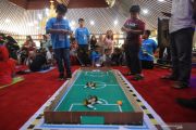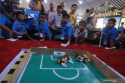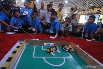 Sejumlah peserta bertanding kategori 'soccer robot' pada First Brick Competition di Klaten, Jawa Tengah, Sabtu (6/7/2019). Selain kompetisi kategori merakit lego, juga terdapat kategori 'soccer robot' yang diikuti anak-anak usia 5 - 11 tahun untuk mengasah kemampuan logika anak dalam mengembangkan teknologi robot menyongsong industri 4.0. ANTARA FOTO/Aloysius Jarot Nugroho/ama.