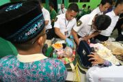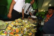 Petugas memeriksa koper jamaah calon haji di Asrama Haji Embarkasi Surabaya, di Surabaya, Jawa Timur, Minggu (7/7/2019). Pada pemeriksaan koper-koper milik jamaah calon haji kloter 6 dan 7 asal Kabupaten Sumenep dan kloter 8 asal Kabupaten Bangkalan petugas menyita ribuan sachet obat atau jamu tradisional dan rokok berbagai merk karena melanggar ketentuan yang berlaku. ANTARA FOTO/Didik Suhartono/aww.