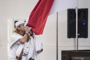 Terdakwa kasus dugaan penganiayaan terhadap remaja Bahar bin Smith mencium bendera Merah Putih seusai menjalani sidang putusan di gedung Arsip dan Perpustakaan, Bandung, Jawa Barat, Selasa (9/7/2019). Majelis hakim menjatuhi hukuman kepada Bahar bin Smith tiga tahun penjara, denda Rp50 juta dan subsider satu bulan kurungan. ANTARA FOTO/M Agung Rajasa/pras.