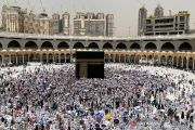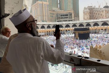 Seorang jamaah memotret dengan ponselnya sebelum memasuki waktu shalat Jumat di Masjidil Haram, Makkah, Arab Saudi, Jumat (12/7/2019). Banyak diantara mereka memilih tempat yang lebih teduh karena suhu di luar ruangan mencapai lebih dari 40 derajat celcius. ANTARA/Hanni Sofia/aa