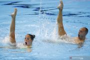 Pasangan perenang indah Amerika Serikat Bill May dan Natalia Cristina Vega Figueroa beraksi dalam babak penyisihan nomor Duet Teknik Campuran Kejuaraan Renang Dunia FINA ke-18 di Gimnasium Yeomju, Korea Selatan, Sabtu (13/7/2019). ANTARA FOTO/REUTERS/Stefan Wermuth/wsj.