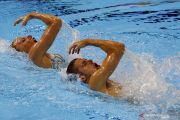 Pasangan perenang indah Rusia Mayya Gurbanberdieva dan Aleksandr Maltsev beraksi dalam babak penyisihan nomor Duet Teknik Campuran Kejuaraan Renang Dunia FINA ke-18 di Gimnasium Yeomju, Korea Selatan, Sabtu (13/7/2019). ANTARA FOTO/REUTERS/Stefan Wermuth/wsj.
