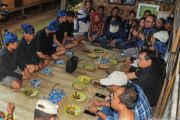 Petugas BPJS Ketenagakerjaan (kanan) memberi paparan saat melakukan sosialisasi kepada warga Baduy di Kampung Kaduketug Ciboleger, Lebak, Banten, Sabtu (13/7/2019). Sosialisasi tersebut untuk memberi pemahaman bagi warga Baduy terkait jaminan asuransi kecelakaan kerja. ANTARA FOTO/Muhammad Bagus Khoirunas/af/foc.