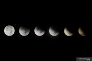 Foto kombo gerhana bulan parsial terlihat di Kota Padang, Sumatera Barat, Rabu (17/7/2019). Fenomena gerhana bulan setengah tersebut hanya terlihat hingga pukul 04.00 WIB karena sebagian langit tertutup awan di kota itu. ANTARA FOTO/Iggoy el Fitra/aww.