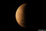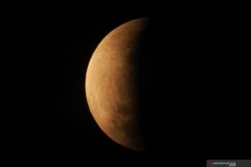 Puncak gerhana bulan sebagian atau parsial sekitar pukul 04:30 WIB terlihat dari Bekasi, Jawa Barat, Rabu (17/7/19). Durasi gerhana bulan sebagian ini dapat diamati selama dua jam dan 58,8 menit dari fase awal hingga fase akhir. ANTARA FOTO/Paramayuda/aww.