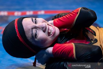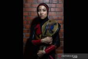 Atlet gulat asal Malaysia Nor "Phoenix" Diana berpose dengan sabuk kejuaraan Malaysia Pro Wrestling di Kuala Lumpur, Malaysia (6/7/2019). Dengan postur hanya setinggi 155 sentimeter dan berat 43 kilogram, kecepatan dan ketangkasannya mampu melumpuhkan lawan. ANTARA/AFP/Mohd RASFAN/aa