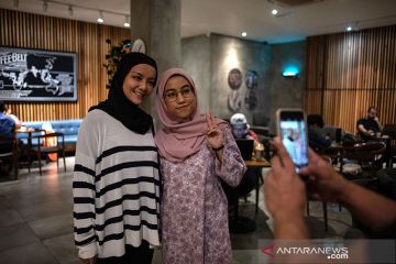 Atlet gulat asal Malaysia Nor "Phoenix" Diana melayanai swafoto atas permintaan penggemarnya yang seorang artis lokal, Mira Filzah (kiri) sebelum makan malam di sebuah restauran di Kuala Lumpur, Malaysia (15/7/2019). Beberapa kali juga mengikuti turnamen lokal Malaysia Pro Wrestling (MyPW), yang memiliki kesamaan dengan World Wrestling Entertainment yang sangat populer di Amerika Serikat. ANTARA/AFP/Mohd RASFAN/aa