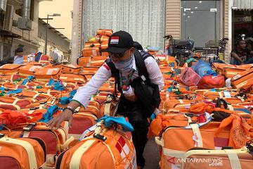 Seorang petugas haji Indonesia mengecek kelengkapan koper milik jamaah calon haji asal Makassar di depan lobi Hotel Tayeb, Syisyah, Mekkah Rabu (17/7/2019). Total jamaah calon haji Indonesia tahun ini sebanyak 231.000 orang, Indonesia merupakan negara terbanyak mengirimkan jemaah haji ke Tanah Suci setiap tahunnya dibandingkan dengan negara lain. ANTARA/Hanni Sofia/pri
